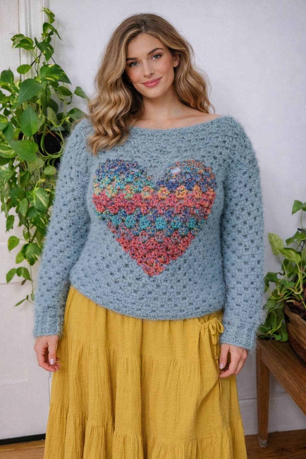 A hand-crocheted, one-of-a-kind sweater built entirely from dimensional texture.